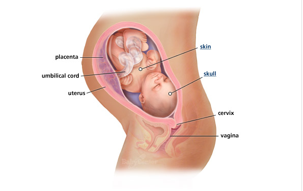 Movement: He’s head down now, and pushing hard on the left side of my pelvis. It’s a really funny feeling. He’s pushing to get lower and lower.