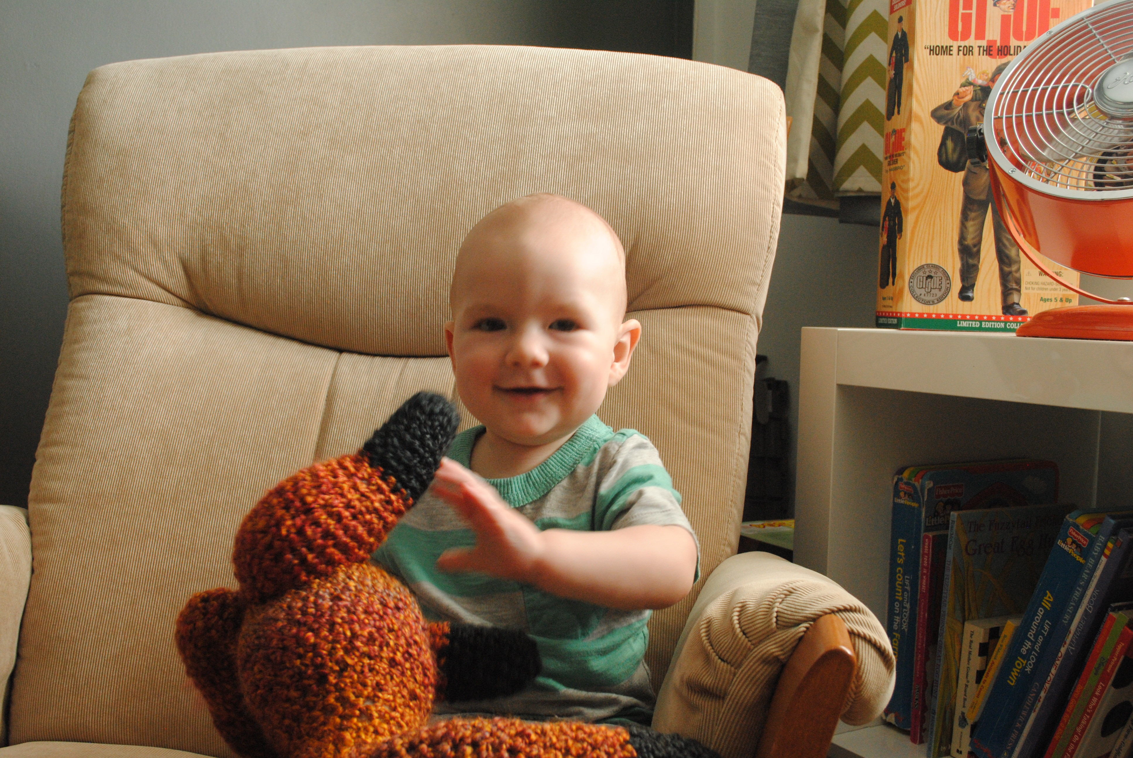 Weight: 20 lbs? Not sure since we haven’t been to the doctor since his 6 month check up. He’s heavier and longer for sure. Wearing 18 – 24 month outfits. We’ve switched to t-shirts and bottoms since most onesie/rompers are too short. I’ve started just carrying him to and from the car to put him into his carseat since it’s so awkward to carry. I think we’ll be switching to the convertible seat soon. On our past few longer car rides he’s not super happy, I’m thinking he might be uncomfortable in the chair but he’s still under the weight limit – closer to outgrowing it height wise soon though.