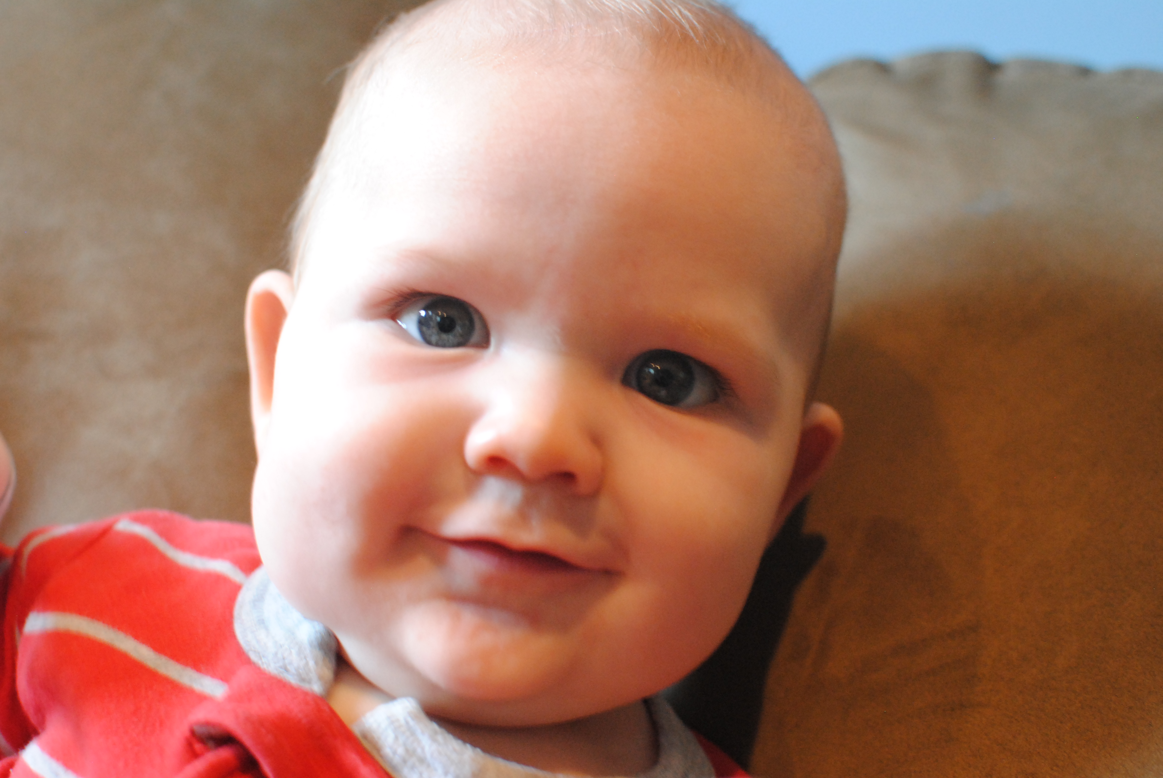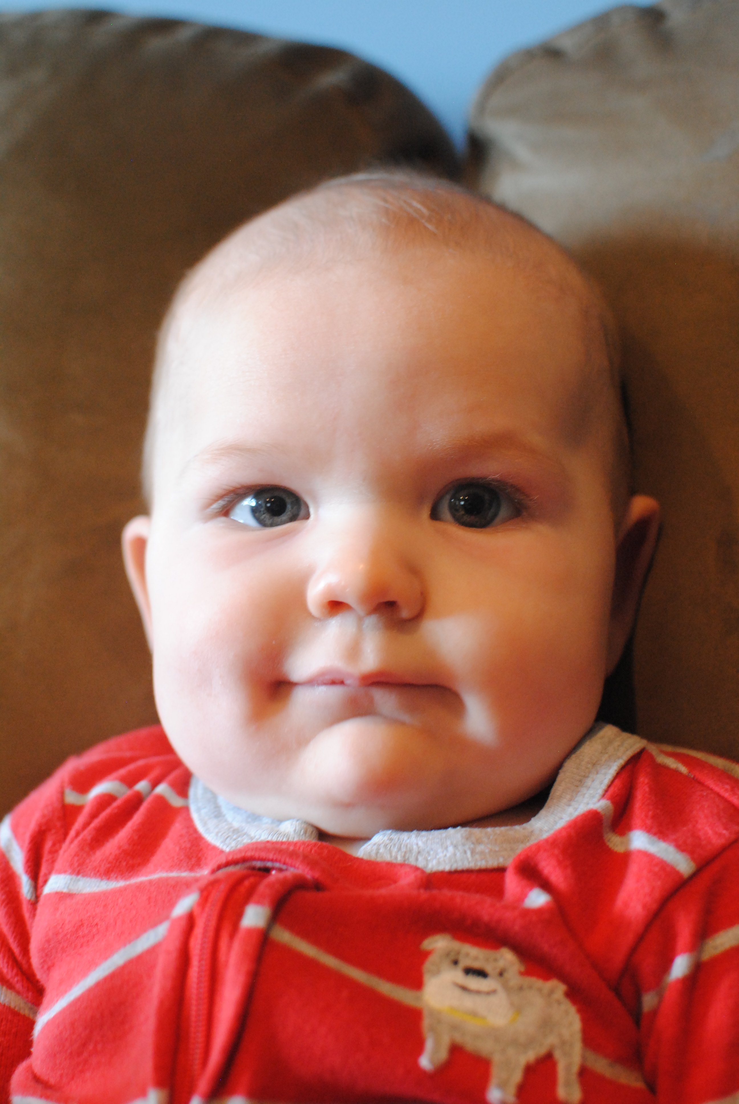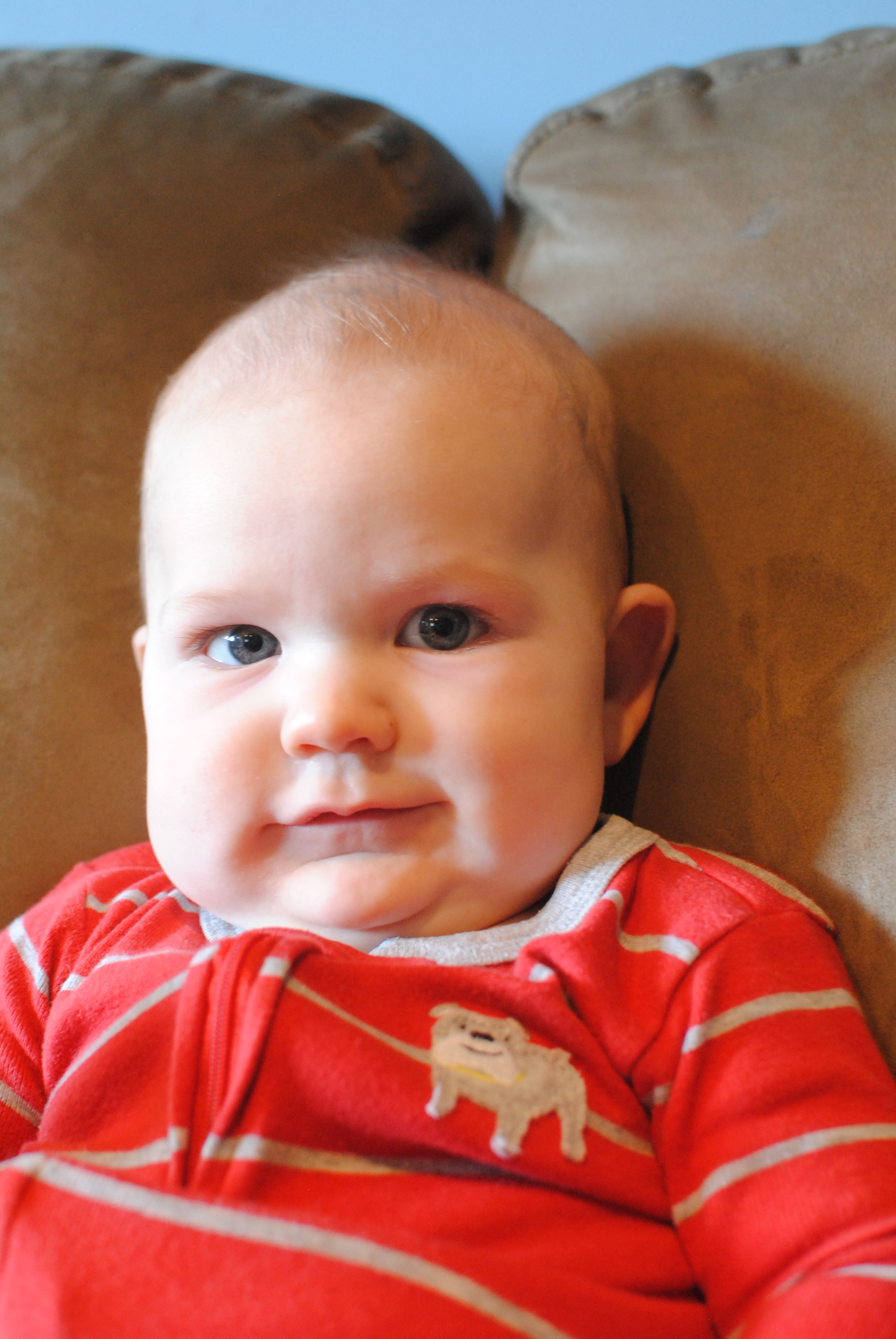 Nursing: Going well, I’ve gone back to feeding him on both sides, just to make sure he’s really getting full feedings. Sometimes he takes both, sometimes not. Teething has made way for biting, not cool. But we’re still doing ok. He started solids this month. I can’t keep food way from him! If he’s sitting on my lap he’s clawing at my plate to get handfuls. He loves sitting in the high chair during meal times and will eat anything I give him. So far he’s had: avocado, banana, broccoli, blue berries, raspberries, green beans, sweet potato, carrots, red potatoes, Dave’s Killer Bread (toasted), yogurt, steak and pot roast. Meat is probably his favorite. Which makes sense, red meat was one of my major cravings when I was pregnant. Funny – since I was vegiterian when I was pregnant with Riley, how stuff changes! We’re doing Baby Led Weaning with him, like we did with Riley. It’s much less stressful the second time around. Plus, since I’m doing Whole 30 I have tons of BLW friendly food around. I haven’t offered him water yet – I was at target yesterday and didn’t find the sippy/straw cup I wanted.
