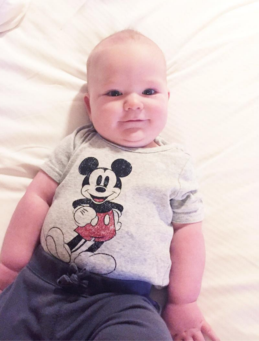 Sleep:We’re SO close! I was really hoping he’d had doubled his birth weight by this point, but not yet. The days we hang out at home and het gets really solid naps are awesome. He’ll nap from 1.5 – 3 hours depending on how long his morning nap is. Sometimes he’ll take 2, 1.5 – 2 hour naps and then a 45min evening cat nap. Bedtime is 7pm. And I’ll dream feed him between 9:30pm and 10pm before I got to bed. Some nights he’ll sleep through the night until 7am/8am. Other nights he’ll wake at 2am or 4am to eat, and then go back to sleep. Because his night waking is random I’m sure it’s because he’s hungry. I typically let him fuss for 5min before I go down to feed him, just to make sure he’s actually hungry. He’s falling asleep on his own, and sometimes I’ll have to sit in the room until he calms down, or “sush” until he’s relaxed.