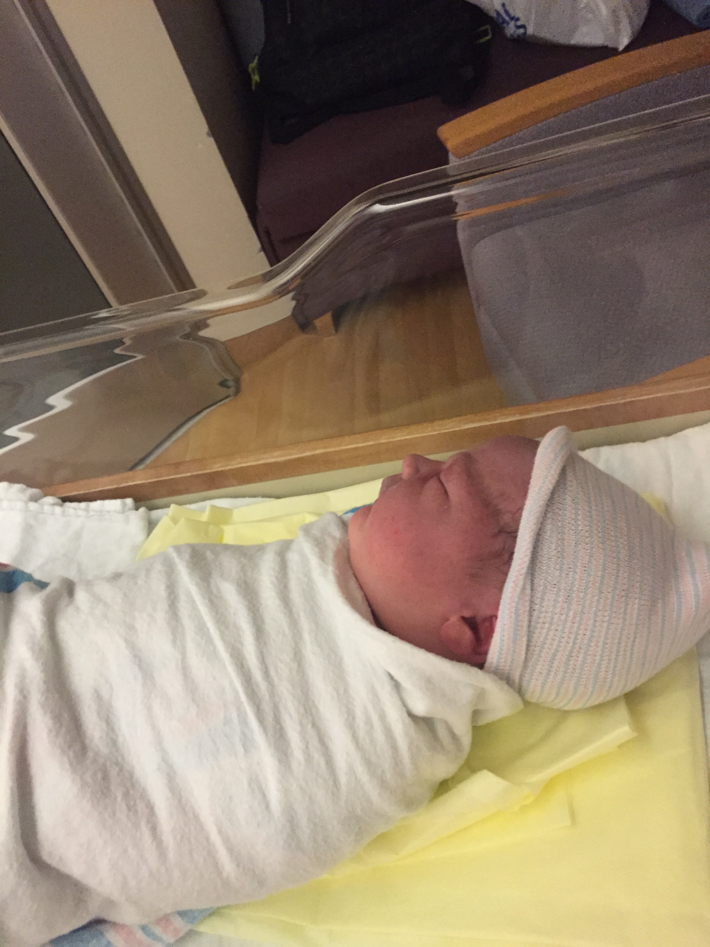 Our nurse was a 40 year L&D veteran and originally from New York. She basically babysat us all night long, and would come in just as I was drifting off to sleep to reposition the baby’s monitor. Fun fact – the L&D beds are made for DELIVERY – not LABOR. The most uncomfortable beds in world. I would have been happier sitting on the floor.